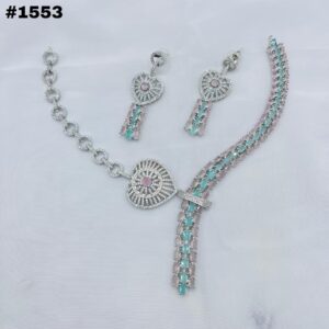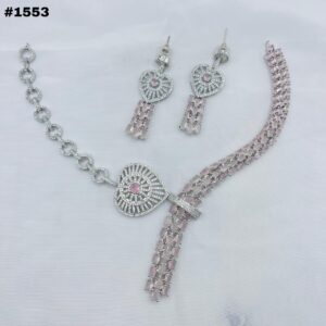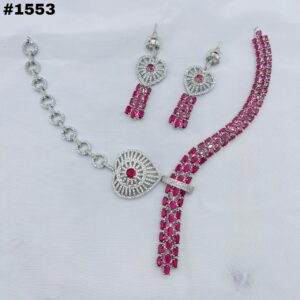 New American Diamond Zircon Round Set +Earings