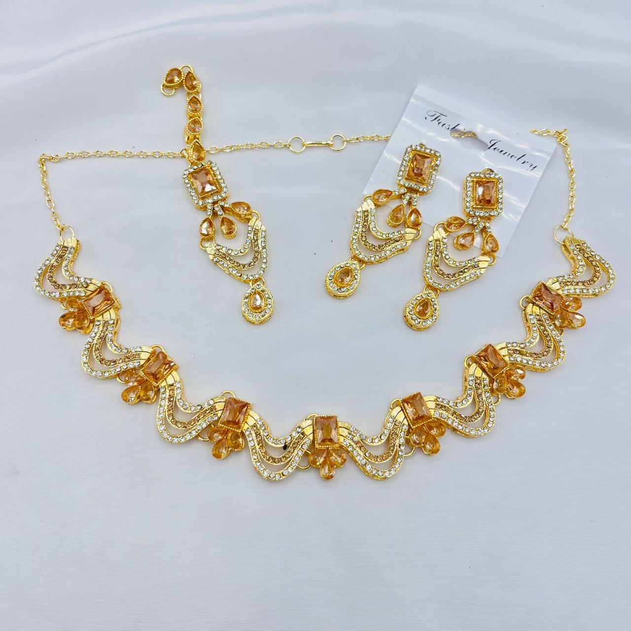 American Diamond Carat Triple Layer Set +Earings